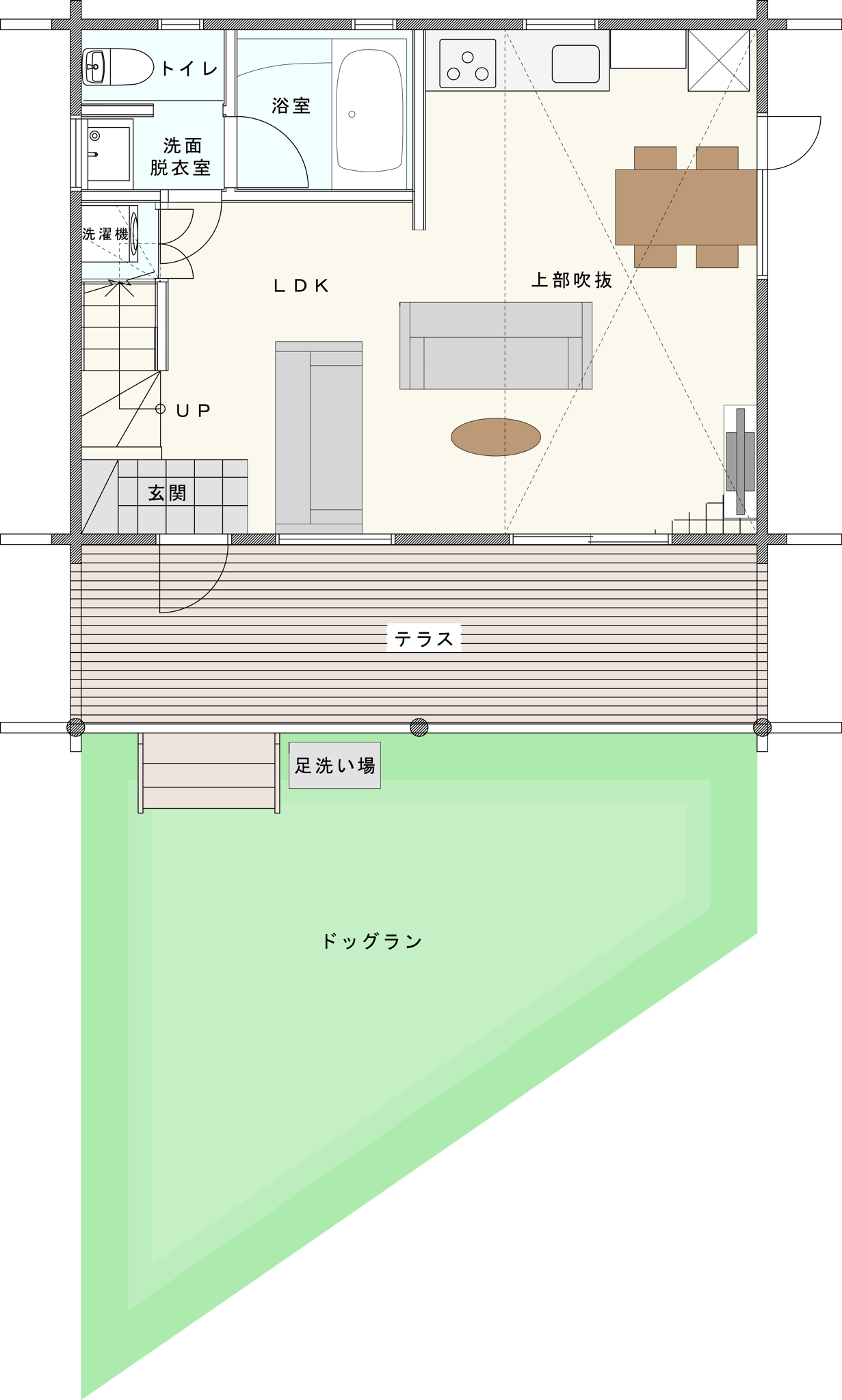 2階に個室が1部屋あるファミリータイプ